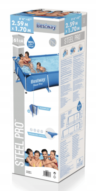 Каркасный бассейн Bestway Bestway 56404 300х201х66 Steel Pro отличается высокой прочностью и устойчивостью. Чаша выполнена из высококачественного трехслойного ПВХ: два слоя плотного винила и один - полиэстер для особой прочности. Каркас металлический нержавеющий оцинкованный.